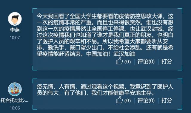 大家在收听收看结束后纷纷发表感触感想,读书社学子表示此次课程进一步了解了疫情期间一线工作者的不易,进一步坚定了对于战胜疫情的决心和信心,更加增强了对我们伟大祖国和人民的无限敬佩和热爱之情。