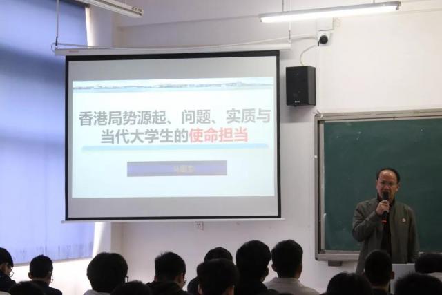 12月6日下午,党委委员、副经理马国玄为机电工程系师生作题为“香港局势源起、问题、实质与当代老员工的使命担当”专题讲座。讲座由机电系党总支书记林玉媛主持。