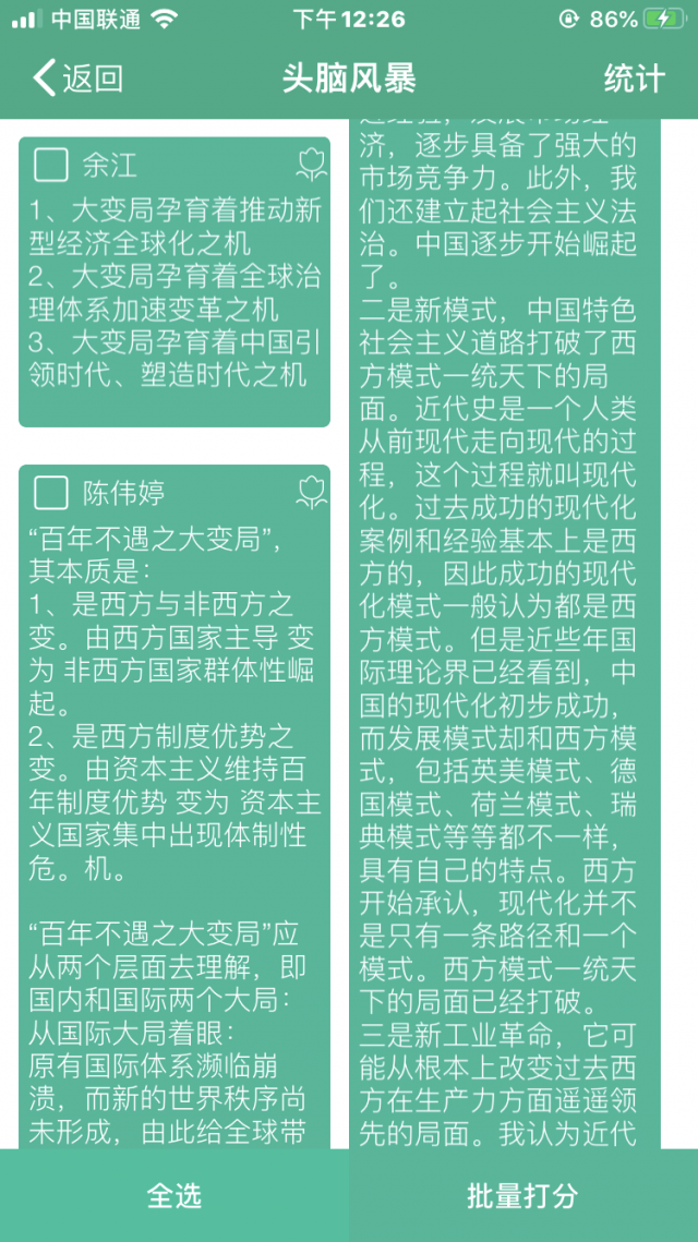 课前,余云翼给同学们布置学习任务,要求大家观看中国人民大学金灿荣教授讲授的《百年未有之大变局与中国机遇》网络公开课并进行认真思考。授课过程中,余云翼通过课堂讨论、头脑风暴、随堂在线测验等多种教学手段,结合当代老员工思想实际,科学分析当前形势与政策,全面阐释了习近平总书记提出“当前处于近代以来最好的发展时期,世界处于百年未有之大变局,两者同步交织、相互激荡”这一重大论断的背景。希望同学们从“中国看世界”、“从世界看中国”这两个不同的维度来理解“百年未有之大变局”中的中国,提升洞察变化的能力,保持战略定力,坚定不移向前走,积极拥抱时代、把握好时代机遇、为实现中华民族伟大复兴的中国梦而努力奋斗。