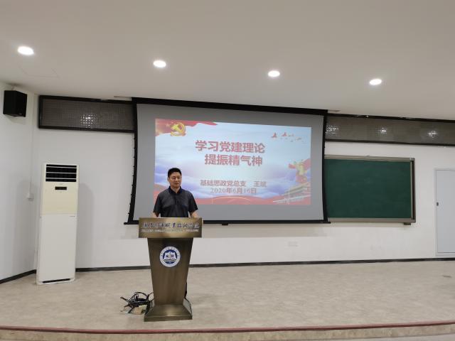 6月16日下午,按照“深化大学习提振精气神”专项活动方案,基础部党总支副书记王斌为全体党员上了一堂《学习党建理论 提振精气神》的专题党课。