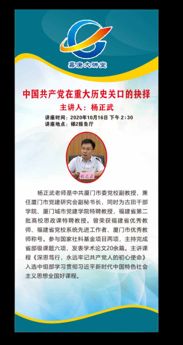 【讲座预告】嘉庚大讲堂:杨正武—中国共产党在重大历史关口的抉择