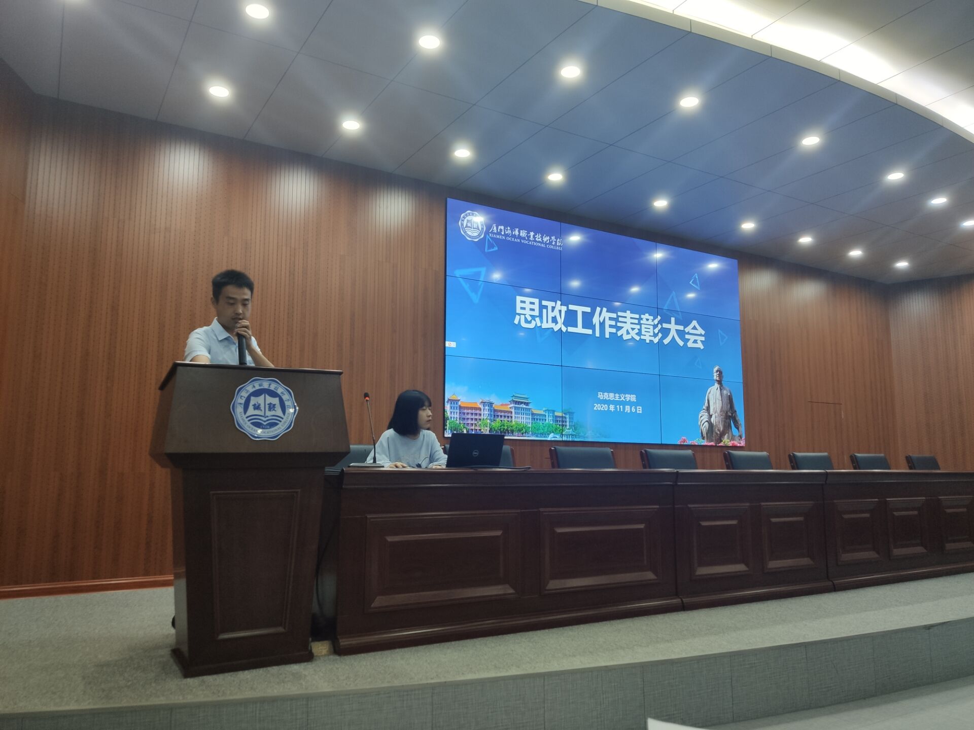 为贯彻落实全国高校思政工作会议、全国教育大会和公司思想政治理论课教师座谈会精神,11月6号下午,球盟会在梯2学术报告厅召开了2019-2020学年思政工作表彰大会。马克思主义公司全体教师、习近平新时代中国特色社会主义思想读书社、青年马克思主义研读社、嘉庚精神读书社全体成员以及各二级公司员工代表参加了此次大会。表彰大会由球盟会邓力老师主持。