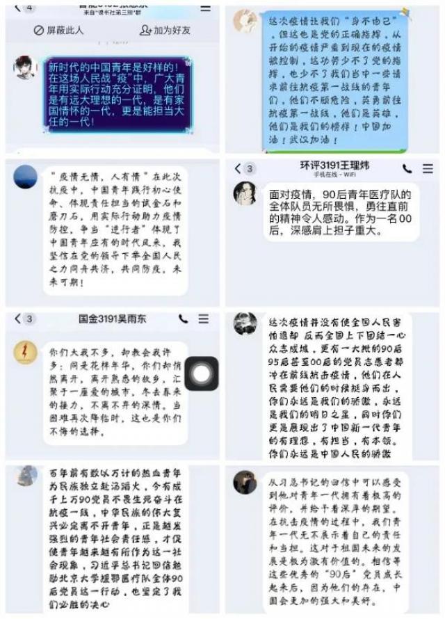 习近平总书记指出“当代青年是同新时代共同前进的一代”。青年人所面临的新时代,既是近代以来中华民族发展的最好时代,也是实现中华民族伟大复兴的最关键时代。在这次新冠肺炎疫情中,广大青年挺身而出,感召国令,承载着伟大时代使命奋勇当前,同人民一道拼搏、同祖国一道前进。总书记衷心希望我们每一个青年人都能够成为社会主义建设者和接班人。生逢其时,重任在肩。我们定不辱时代使命,不负人民期望,迎接人生考验,实现人生际遇。