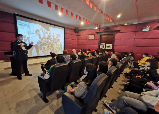 为深化思政课程改革创新,深入开展“四史”学习教育,传承特色红色文化,12月8日下午,球盟会教师王静、张盼、杨秀兰带领国际商贸公司、海洋机电公司、海洋生物公司、信息工程公司2020级员工代表共计150余人开展实践教学。