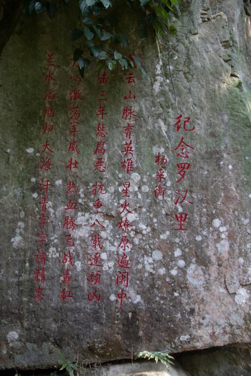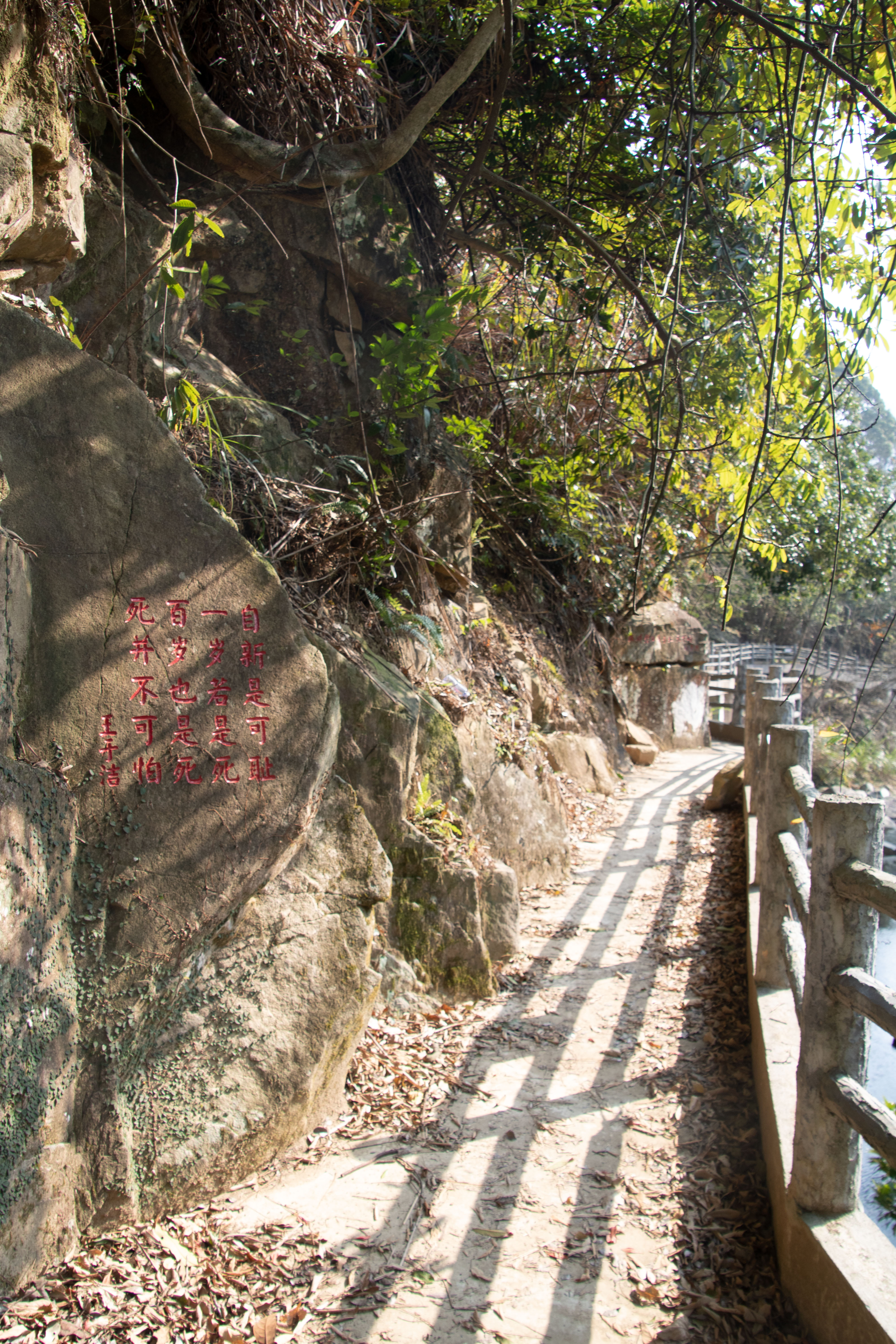 沿着左侧的林荫小道向里延伸,首先来到的就是我们的“红军崖。”长长的傍山小路上,有着革命先辈们题下的文字,或诗词,或警句,或记叙。承载着红色记忆,穿过历史的长河,来到现在为我们讲述着当时的故事。