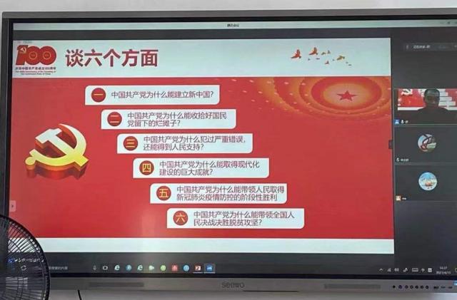 会上,全体教师集体收看了校纪委书记缪雄平讲授《形势与政策》课第一讲《中国共产党为什么能》。繆书记围绕中国共产党为什么能建立新中国、中国共产党为什么能收拾好国民党留下的烂摊子、中国共产党为什么走过曲折历程还能得到人民支持、中国共产党为什么能取得现代化建设的巨大成就、中国共产党为什么能带领人民取得新冠肺炎疫情防控的阶段性胜利、中国共产党为什么能带领全国人民决战决胜脱贫攻坚六个问题展开,从理论和实践层面深入阐述回答了中国共产党为什么“能”的政治命题。并寄语党员干部和师生员工要在新时代展现新担当、新作为,自觉为实现新时代党赋予的历史使命而努力奋斗。