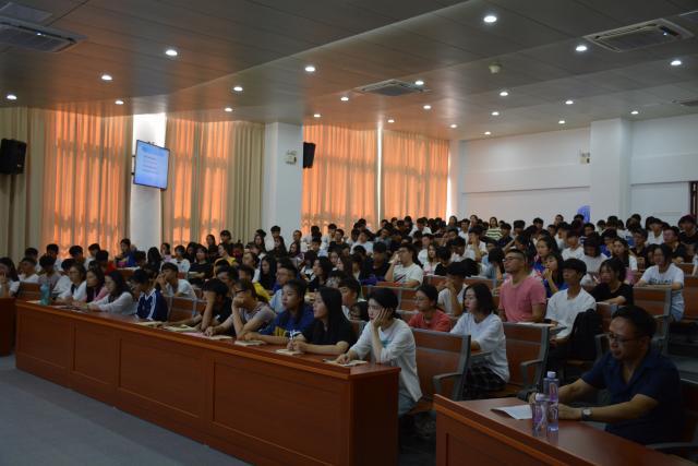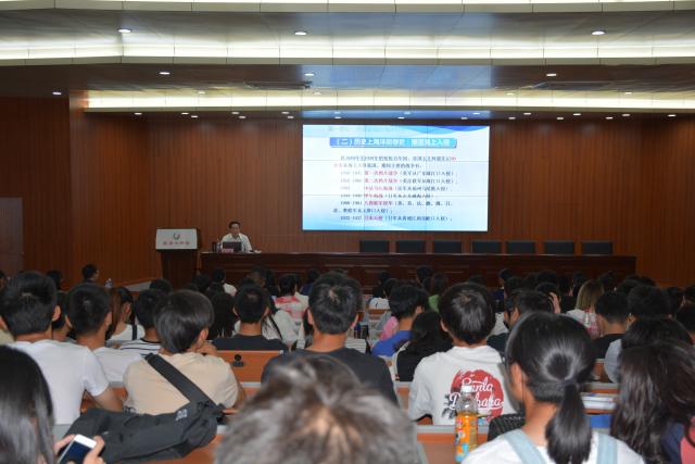 周志勇主任对陈泽銮会长的到来表示感谢,赞扬了他丰富的人生历练。随后,陈泽銮会长作了《关于加快建设海洋强国的专题报告》,为海院师生上了一堂生动的形势与政策课。当讲到我国海军近年来捍卫领海主权的事迹时,全场响起雷鸣般的掌声,海院学子纷纷为祖国的强大而爆发出强烈自豪感。陈泽銮会长号召同学们积极加入中国共产党,刻苦学习海洋知识、专业知识,为建设海洋强国贡献自己的一份力量。