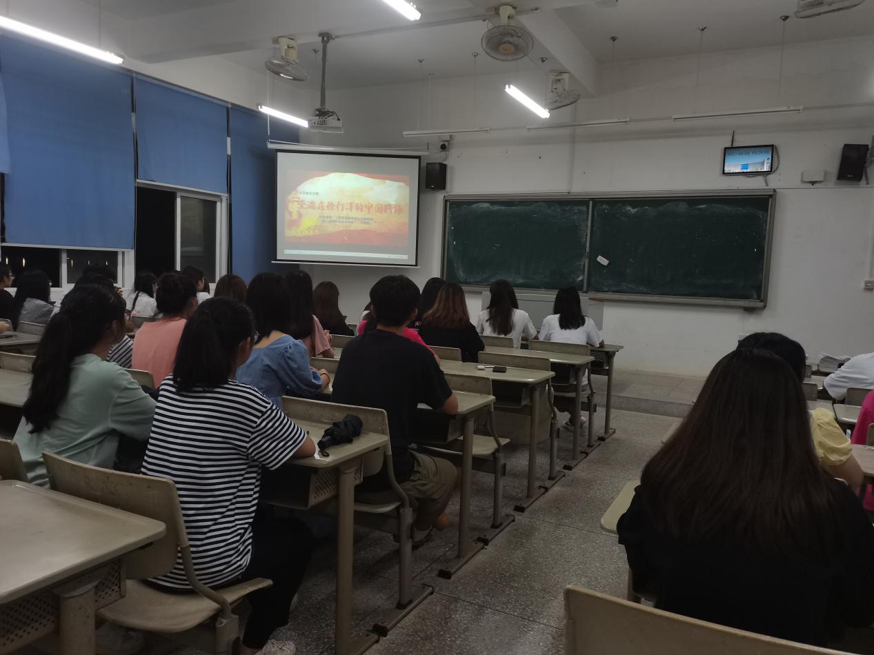 6月24日晚,嘉庚精神读书社社员们在教学楼1305举办了本学期第四次读书活动,本期读书活动,社团成员一同观看了指导老师王靓靓的微课《森林课堂》。这是关于抗日战争时期公司播迁大田期间发生的故事,同学们观看后,感受颇深。
