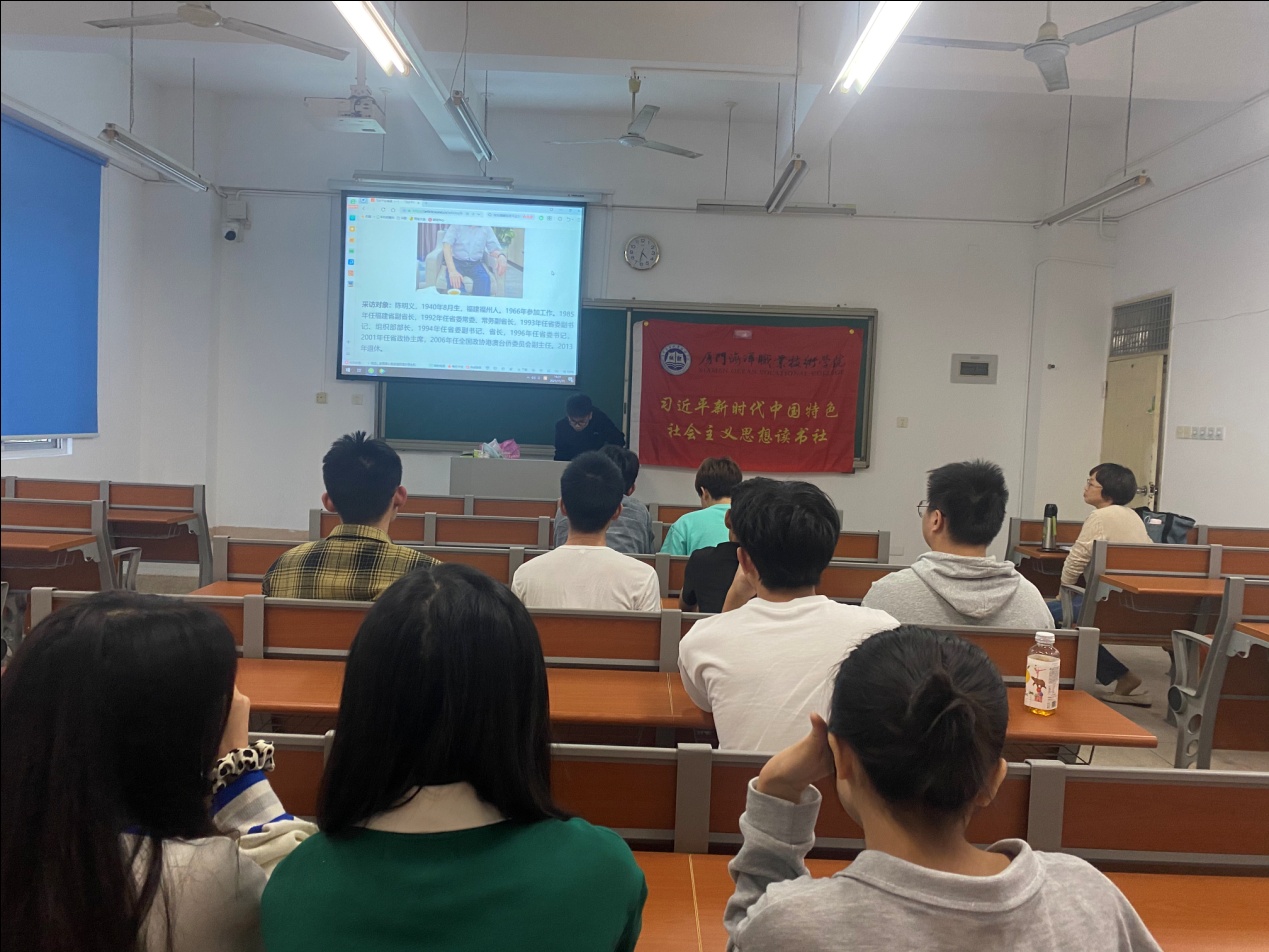 为深入学习贯彻习近平新时代中国特色社会主义思想,充分发挥习近平新时代中国特色社会主义思想读书社(简称读书社)的理论学习先导作用。2021年11月11日,读书社成员在思明108教室开展了诵读《习近平在福建》读书活动。