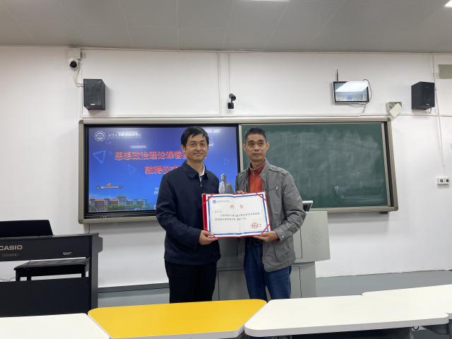 研讨会开始前还举行了球盟会思想政治理论课客座教授敦聘仪式,球盟会经理林杰钦代表公司为张有奎教授颁发了聘书。