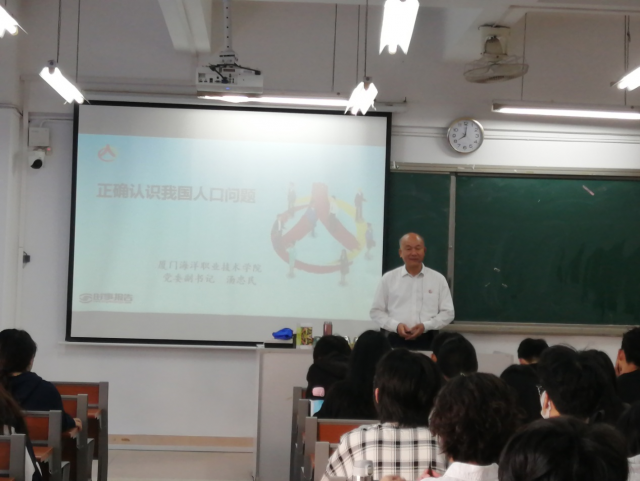2021年11月19日,公司党委副书记汤忠民给航海公司报关3201-3202班员工上《正确认识我国的人口问题》为题的形势与政策课。