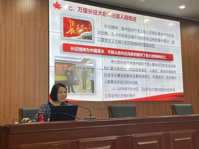9月14日下午,由林晓娇助理研究员带来的《山河为证岁月为名——为什么说党的百年奋斗书写了中华民族几千年历史上最恢宏的史诗?》专题讲座在T2报告厅如期开讲。林晓娇助理研究员从第五次反围剿的失败与被迫长征,长征突破的第一,二,三道封锁线,遵义会议是生死攸关的伟大转折,夜行军的考验四个方面展开,党领导红军以非凡的智慧和大无畏的英雄气概,战胜千难万险,付出巨大牺牲,胜利完成震撼世界、彪炳史册的长征,宣告了国民党反动派消灭中国共产党和红军的图谋彻底失败,实现了中国共产党和中国革命事业从挫折走向胜利的伟大转折,开启了中国共产党为实现民族独立、人民解放而斗争的新的伟大进军。同时,紧密结合中国具体实际,通过乌迳胜利后的一幕、红军爬雪山过草地等妙趣横生的党史小故事让党史“鲜活”起来,与在场员工积极互动、气氛热烈。会后,林晓娇助理研究员还为回答问题的同学送上精心准备的书籍,希望青年员工能够学史明理、学史增信、学史崇德、学史力行。