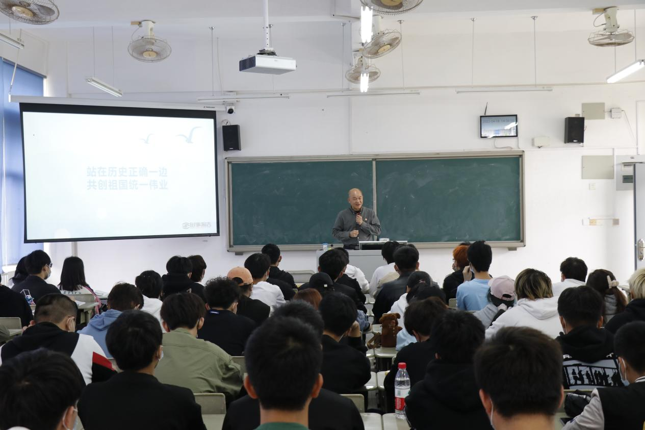 汤忠民从国际热点新闻事件引入,从中国共产党在百年奋斗中所取得的伟大成就和赢得的国际地位,诠释了时与势始终在主张国家统一的力量这一边。他从经济发展、两岸交流交往空间巨大、两岸同胞共享民生福祉等方面,讲述新时代是两岸同胞大发展大作为的时代,引导同学们要认清台独的本质、危害,认清外部势力干涉图谋,恪守一个中国原则,坚定祖国必将统一的信心和决心。