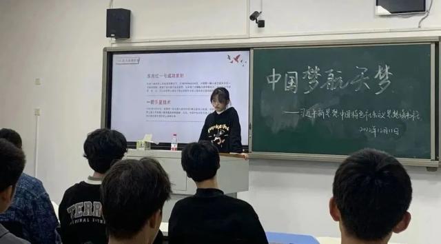 社长刘腾丹带领读书社成员们回顾了中国航天事业的发展史,并结合视频为大家讲述宇航员们在太空中的工作与学习、科普相关航空航天知识、分析发展航空航天事业的时代价值,引领社员们感受航天情怀、感悟航天魅力、领悟航空航天人的国家荣誉感和使命感。