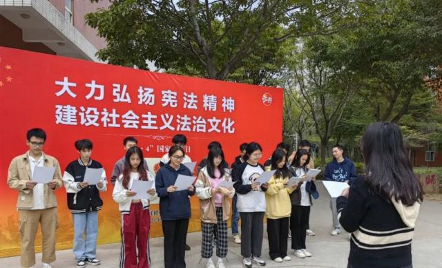法立于上,教弘于下,沐浴法治,宪法随行。读书社指导老师兰水芹、张盼带领社团干事组织全体社团成员通过网络学习、线下沙龙、游戏活动、校园诵读等丰富活泼的形式深入学习宪法。师生齐参与、共学习,感受宪法的权威与力量,加深了对宪法的地位、核心内容以及宪法的重要性的理解,让宪法“声”入人心,让习近平法治思想走深走实。