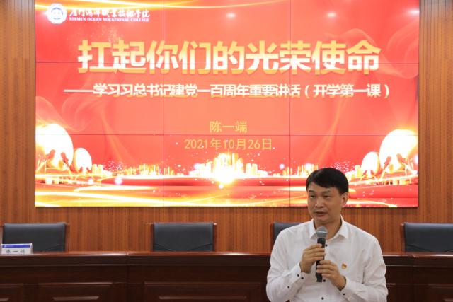 10月26日,公司党委书记陈一端以“扛起你们的光荣使命”为题,采用互动课堂形式,给2021级新生上开学第一课。