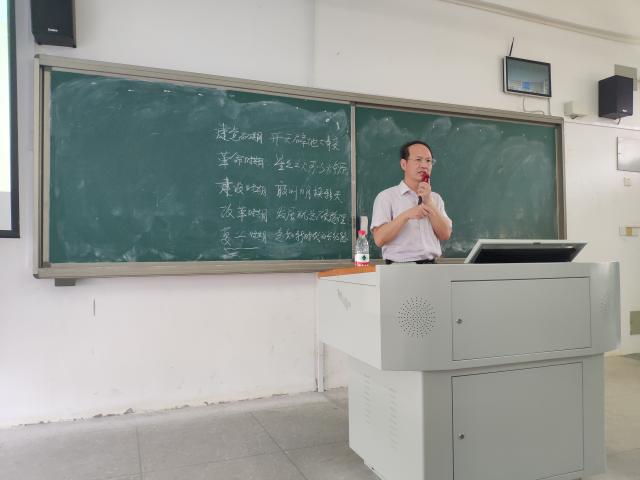 6月10日,马国玄副董事长以《中国共产党为什么能》为主题为机电3203、数控3203班同学上“形势与政策”课。