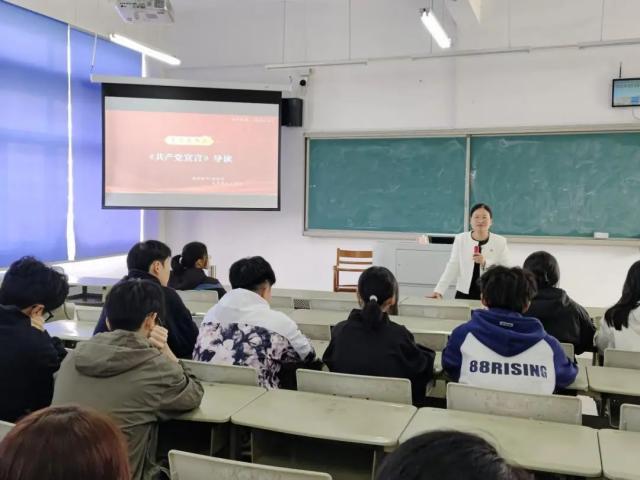 本次读书会主要内容如下:首先,由郑昭华老师进行《共产党宣言》专题分享,郑老师从“《共产党宣言》是一本什么样的书?”这一问题切入,从《共产党宣言》的诞生、影响及内容等方面对《共产党宣言》这本书进行了详细的介绍,带领社团成员回到历史现场,从回顾共产主义者同盟这个组织的发展历程中去探寻《共产党宣言》的形成背景,并连续用“三个追问”以问题链的方式引导启发社员们思考:一、《共产党宣言》到底是一本什么样的书?可以一经问世,就犹如“精神原子弹”一样震撼了整个世界;二、为什么是“共产党宣言”而不是社会党、民主党或者其他党的宣言?三、《共产党宣言》是如何形成的?并且以风趣、生动的语言对“三个追问”进行一一回应,引导员工领悟黑格尔的“熟知并非真知”这句话蕴藏的深意。其次,由社员就阅读《共产党宣言》中的一些困惑不解的地方进行交流探讨。大家共读《共产党宣言》的引文部分“一个幽灵,共产主义的幽灵,在欧洲游荡。为了对这个幽灵进行神圣的围剿,旧欧洲一切势力,教皇和沙皇、梅特涅和基佐、法国的激进派和德国的警察,都联合起来……郑老师就《共产党宣言》开篇第一句中的关键词“幽灵”对马克思这里为什么用“幽灵”启发社团成员进行思考,并引用德里达的《马克思的幽灵》进行解释。最后,郑昭华老师嘱咐各位读书社社员平时要加强理论学习,夯实思想基础,提升政治素养。