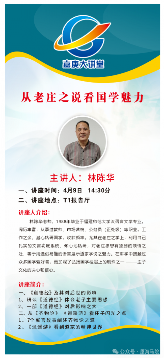 讲座预告 | 嘉庚大讲堂——从老庄之说看国学魅力