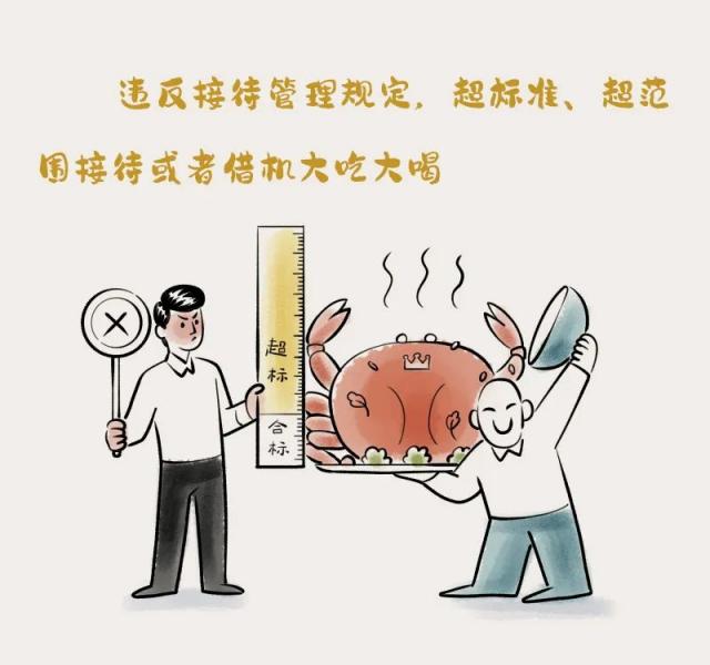 第一百一十六条违反接待管理规定,超标准、超范围接待或者借机大吃大喝,对直接责任者和领导责任者,情节较重的,给予警告或者严重警告处分;情节严重的,给予撤销党内职务处分。