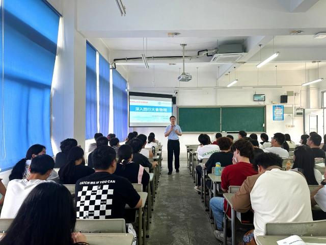 6月7日上午,公司党委委员、副董事长倪辉教授走进思政课堂,与机器人3231班、3232班的同学共听《习近平新时代中国特色社会主义思想概论》课程、与国商3231班、港口物流5201班的同学共听《形势与政策》课程。当天下午,倪辉教授再次走进思政课堂,为加工3231班、养殖3233班的同学们讲授“深入践行大食物观”专题思政课。