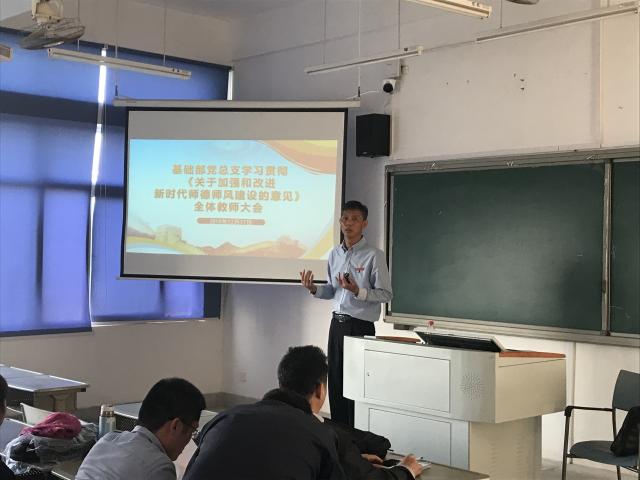 基础部党总支举行全体教师大会专题学习《关于加强和改进新时代师德师风建设的意见》